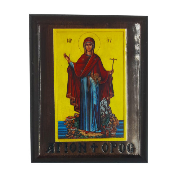 Создана монахами из келий Святой Горы Афон, простая бумага на древесноволокнистой доске, покрытая специальным прозрачным лаком, не портится со временемИкона на простой бумаге