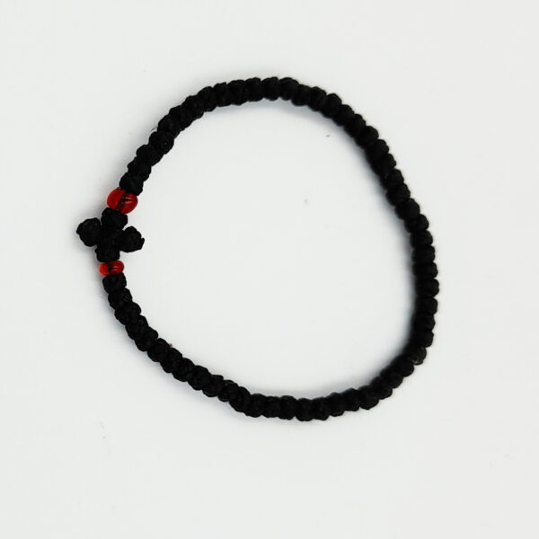 Комбоскини на руку с маленькими узелками из вощеной нити черный, красные бусины