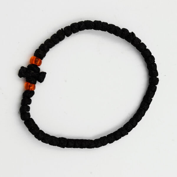 Комбоскини на руку с маленькими узелками из вощеной нити черный, оранжевые бусины